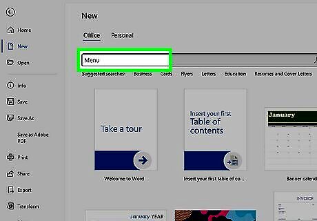 Open Microsoft Word. If you want to skip making your own template and instead try one of Microsoft's templates, you can do so from the Word application. If you open the application alone, you'll see the home screen with suggested templates. If you open an existing document, click File > New. You can also check out Microsoft Create in your browser to see templates for all Microsoft Products, including Word, PowerPoint, Excel, and Designer.