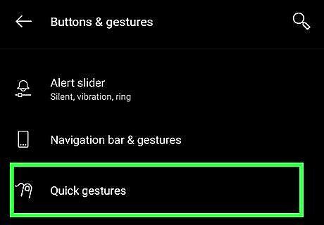 Add quick gestures. Want to quickly open the camera or turn on the flashlight? This can be accomplished through quick gestures.Under buttons and gestures, click on Quick gestures. You can bind various functions to various gestures.