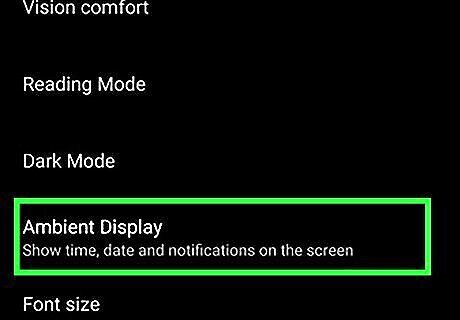 Customize the ambient display. Enable or disable the ambient display in Android 7 Settings App Settings > Display > Ambient display. If enabled, you can choose what information is displayed on the ambient display in the same menu.