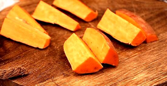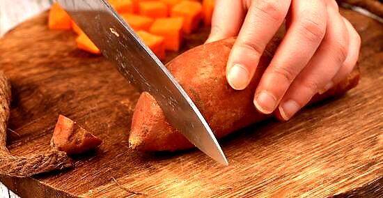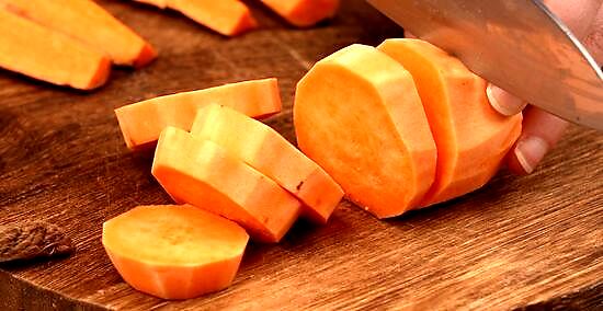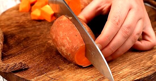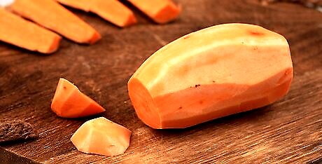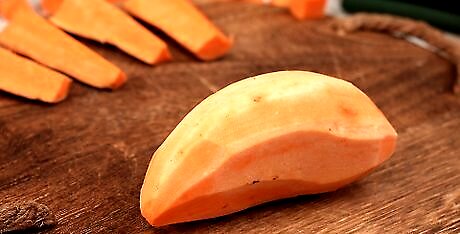 Peel the potato. Use a vegetable peeler to remove the skin from the sweet potato and discard it.