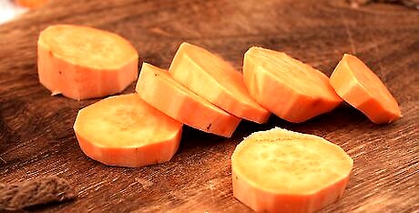 Peel the potato if you wish. Depending on the recipe, you may want your sweet potato rounds to be skinless. If so, peel the potato with a vegetable peeler.