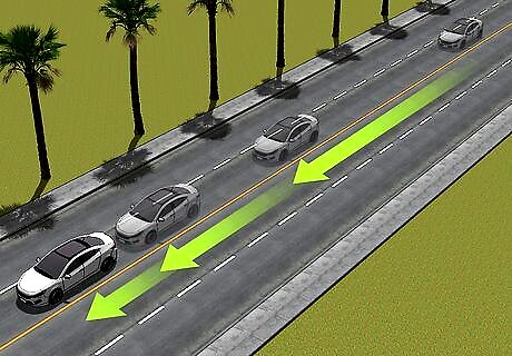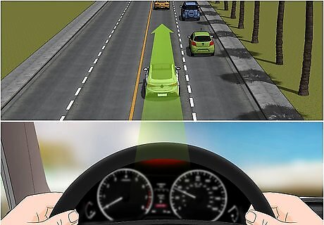 Keep your foot pressing down on the gas. As counterintuitive as this might seem, increasing your speed will give you time to assess the situation and react properly. Because of your blown tire, pressing down on the gas won’t increase the speed of the car, but this action will prevent you from slamming on the brakes and potentially endangering yourself and the other passengers.