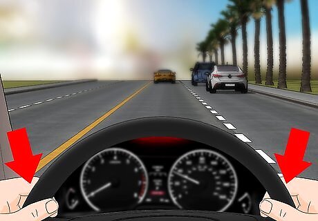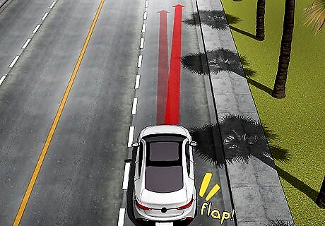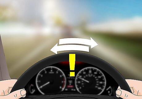 Do not jerk the steering wheel. Keep your car driving in a straight line to minimize any potential swerving, fishtailing, or flipping. Avoid swerving into other traffic on the road. Maintain a firm grip on the steering wheel with your hands at the 10 and 2 position.