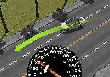 Move to the side of the road when your car has slowed down. Once the car has naturally slowed down to 30 mph (48 km/h) or slower, you may slowly turn the steering wheel to get to the side of the road. Use your blinker to signal to the cars around you that you’re changing lanes.