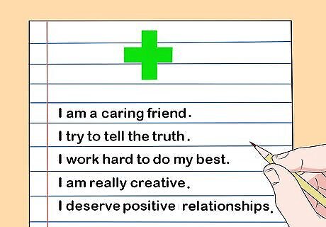 Use positive self-talk to combat abuse. It’s human nature to believe bad things about yourself, especially if you are depressed. You don’t deserve the way you are treated, no matter how they may try to convince you otherwise. Start using positive language to describe yourself to counteract their abusive statements. Make a list of your positive attributes to keep handy. When you hear yourself playing into what the abuser says, repeat the list aloud. Positive self-talk may sound like "I am a caring friend. I try to tell the truth. I work hard to do my best. I am really creative. I deserve positive relationships."
