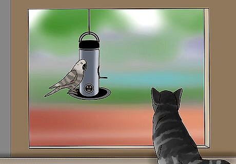 Provide visual stimulation. Give your cat something fun to watch. Put birdbaths and/or bird feeders outside your window, so that your cat can get a good view. This version of “kitty TV” entertains your cat and provides excellent mental stimulation, which can help alleviate pacing at night.