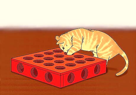 Increase the difficulty. Over time, you will need to increase the difficulty of the puzzles, otherwise your cat may lose interest. Try switching to puzzles with smaller holes or different shapes, or placing puzzles in more obscure areas of your house. If your cat has become a master forager, try making or purchasing difficult two-part puzzles.