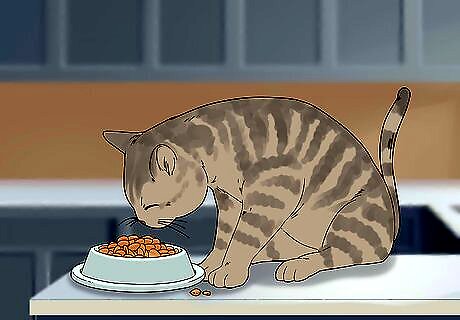Feed your cat prior to bedtime. Another way to stimulate your cat and encourage restful nights is to alter your feeding schedule. Try feeding your cat their main meal within one hour of your bedtime. If your cat has a full belly, they may be more likely to rest well during the night.