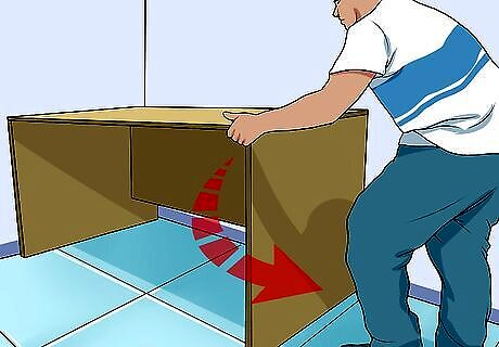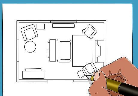 Draw out the arrangement first. Instead of moving the furniture around over and over again, try laying it out on paper or the computer first. Measure the dimensions of the room, as well as all major pieces of furniture. You can either draw items to scale on a piece of paper or use a computer program to do it for you. That way, you can see how pieces fit before moving them around. If you're drawing it out, cut out pieces of paper to size for each piece of furniture. That way, you can move them around more easily in the room you've created on paper. You may find that this gives you a whole new perspective and allows you to arrange the furniture in ways you had never thought of before.