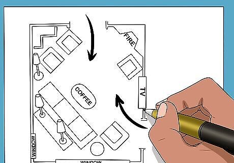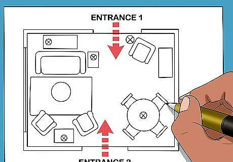 Pay attention to traffic flow. Create enough space for people to navigate through the room. Awkwardly-shaped rooms or small spaces may make this difficult, but make sure you're leaving a pathway that people can use to get in and/or through the room. For instance, you may need to group furniture in 2 opposite corners if the room has 2 entrances.