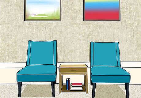 Try some pieces at diagonals if you have a lot of space. It's tempting to place everything absolutely square to one another, creating right angles everywhere. However, it can be more interesting to put some furniture at a diagonal. For instance, you might place the sofa parallel along the rug, while placing nearby chairs at a diagonal angle to the rug. If you have a small space, don’t put pieces diagonally as this can make the room seem even smaller.