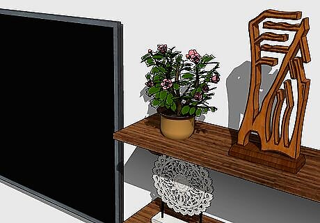 Install individual shelves. For an otherwise bare wall, individual wall shelves are a great way to show off sculptures, vases, and other pieces of art near your TV. Place matching shelves in a staggered pattern on the wall, or buy similarly designed shelves of different sizes to create contrast.