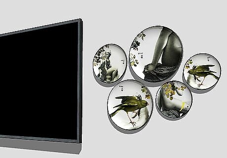 Hang your favorite collection up around the TV. Do you have a collection of antique plates, clocks, mirrors, or other mountable objects? Display these around your TV for a unique presentation.