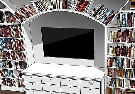 Set your TV inside built-in bookshelves. If you already have a wall of built-in bookshelves, use them to your advantage by creating a space in the center for your TV. Then just fill the shelves with books, photos, and other art.