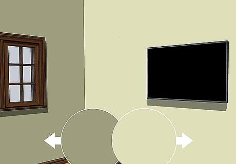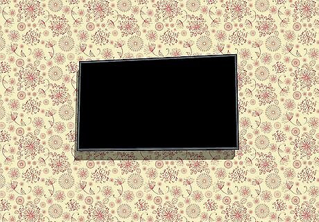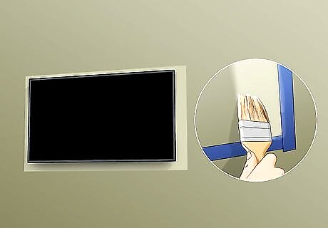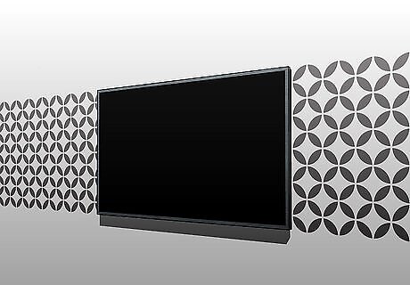 Paint a bright border on the wall around the TV to make it stand out. This works well on a wall that is not highly textured. Use a different, complimentary color paint to frame the TV from the rest of the wall around it. Use a large ruler to mark points in pencil on the wall for the TV’s central point and then for the rectangular border around it. Use painter’s tape to connect the marks around the box, and go over the edges of the border with the base color of the wall first, to seal the paint to the wall. When this dries, use your border color to fill in the box.