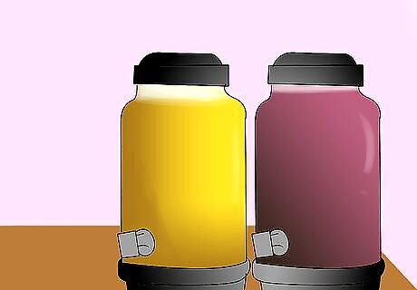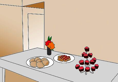 Create a separate space for drinks and drink-making. A create-your-own-cocktail bar can be a fun addition to the party. You may want to put it in the kitchen and refrain from using a tablecloth, making clean-up easier. Don't forget to include some festive non-alcoholic options for the non-drinkers. Soda water mixed with cranberry juice or fresh-squeezed grapefruit juice look good and taste good. Drinks can also be tied into a theme. If you are having a Great Gatsby inspired party, serve prohibition-era cocktails.