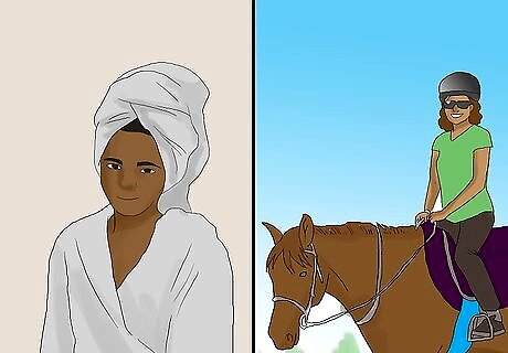 Select a theme for the shower to give your decorations a focus. This is optional and depends on the interests, style, and desires of the bride. Unless the shower is a surprise, ask the bride about her thoughts on a theme. When you discuss the theme with the bride, watch for her level of interest and enthusiasm when you discuss certain ideas. For example, she may not care very much about the colors you choose, but she suddenly becomes passionate when you talk about the flowers or a make-your-own cocktail bar. If the bride-to-be is stressed out, consider a spa day or a less expensive at-home self-care day that includes pedicures, facials, and yummy smoothies. For a movie buff, choose a film-inspired shower that includes champagne, popcorn, and several great movies.