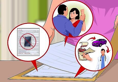 Document any violations of the injunction. You will need to show the judge proof that your parents aren’t following the judge’s orders. This type of proof can take many forms, depending on the circumstances. For example: Get a copy of a cancellation notice if your parents cancel your cell phone. Obtain a copy of a police report if your boyfriend shows up at your home and starts harassing you. Write down the dates you wanted to use your car to go to a doctor’s appointment but your parents wouldn’t let you. Save copies of medical bills your parents refuse to pay.