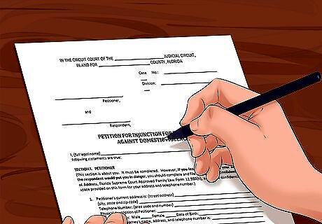 Draft a petition. Your lawyer will start the lawsuit by filing a “petition” (also called a “complaint”). This is a legal document that contains important information, such as why you are suing and what you want the judge to give you (an injunction). Many courts have printed, “fill in the blank” petitions you can use. Check the court’s website. As the person filing the lawsuit, you are the “plaintiff” or the “petitioner.” The name depends on the court. The person you are trying to restrain (your parents, boyfriend, etc.) is the “defendant” or the “respondent.”