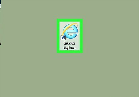 Open Internet Explorer. This app icon resembles a light-blue "e" with a yellow band wrapped around it.