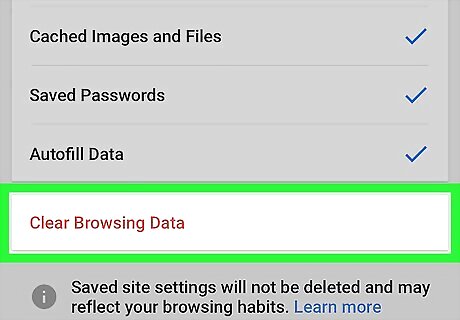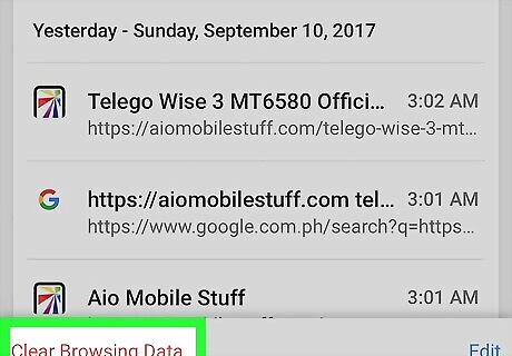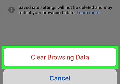 Tap Clear Browsing Data. It's at the bottom of the screen.