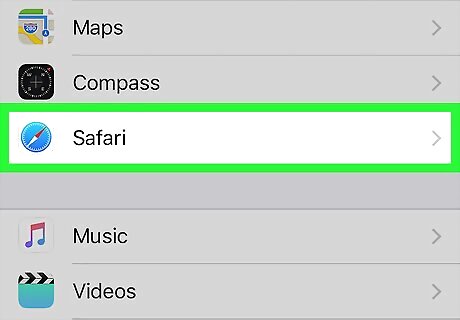 Scroll down and tap Safari. It's about a third of the way down the page.