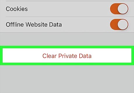 Scroll down and tap Clear Private Data. This option is near the bottom of the page.