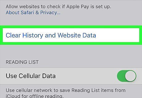 Scroll down and tap Clear History and Website Data. This option is near the bottom of the Safari page.