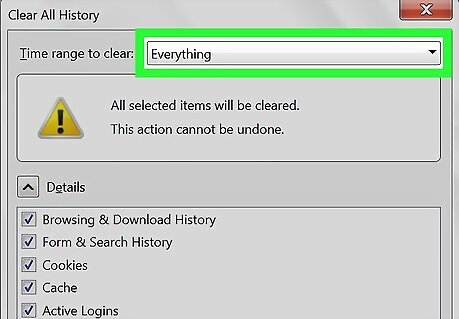 Select a timeframe to clear. Click the drop-down box next to "Time range to clear", then click one of the following: Last Hour Last Two Hours Last Four Hours Today Everything
