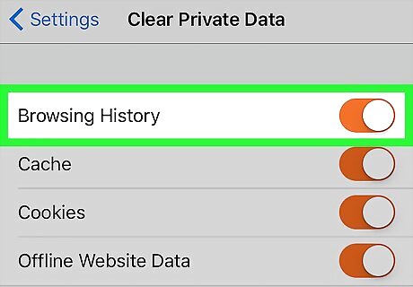 Make sure the "Browsing History" switch is set to "On" iPhone Switch On Icon. If it isn't, tap it before continuing. This will ensure that your browsing history is removed.