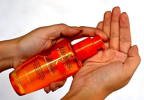Smooth out any frizz or flyaways. Take a small amount of any hair oil of your choice or a hair serum in your hand.Rub it in between your hands. Start applying to the hair from mid length to the tips.