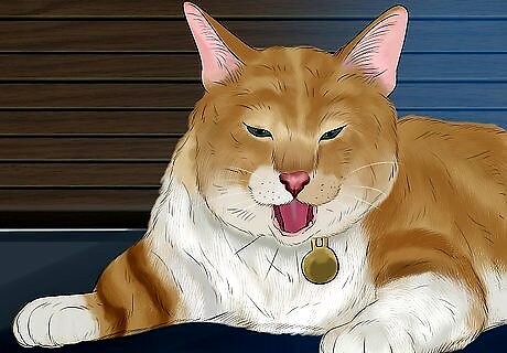 Listen for wheezing or difficulty breathing. If you notice your cat has a persistent cough, look for signs of difficult breathing. Hold your ear near its chest and mouth and listen for wheezing or crackling sounds. Take note if its breathing seems visibly labored or if it consistently breathes through its mouth.