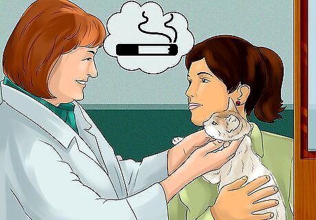 Reduce your cat’s exposure to triggers. If your cat is diagnosed with chronic bronchitis, you should take efforts to reduce its exposure to any allergens that might trigger its respiratory problems. Keep your cat indoors and stop smoking around it. You should also observe and eliminate any particular conditions that worsen symptoms. For example, if you observe your cat coughing or wheezing in a certain room of the house, restrict its access to that room. If you notice a perfume or air freshener triggers its bronchitis, stop using that product. Cat litter can be another trigger. If you think the cat's litter is causing the problem, try buying another brand.