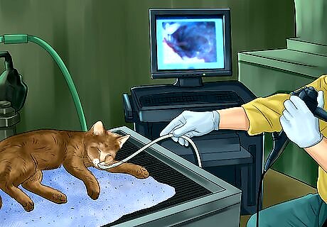 Give the cat an x-ray or bronchoscopy. The vet will most likely recommend some sort of imaging test, such as an x-ray or bronchoscopy. A bronchoscopy is a technique that uses a small camera to examine lung tissue. The vet may also take a culture or biopsy of respiratory tissue to make an accurate diagnosis. There are a number of potential causes, like infection or parasite infestation, that your vet will need to eliminate. Imaging techniques, bacterial culture, and biopsy are the most effective ways of determining the best treatment plan.