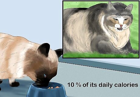 Help your overweight cat lose weight. Obesity puts extra stress on a cat’s circulatory and respiratory systems, so you should help your overweight cat lose weight. If you free-feed your cat, switch to scheduled feedings. If you give your cat treats, make sure they account for no more than ten percent of its daily calories. Ask the vet if they have any further weight loss recommendations. Since obesity can be a lifelong condition, the cat may need ongoing treatment of their bronchitis.