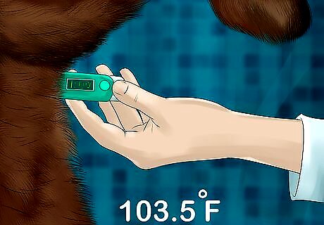 Check for fever and other symptoms of bronchitis. If you have a pet thermometer, take your cat’s temperature. A temperature of 103.5 degrees Fahrenheit (39.7 degrees Celsius) or higher indicates a fever. Other symptoms of bronchitis include general stress and loss of appetite. You might also notice a bluish tint to the mucous membranes, like the nose, gums, and lips. This is due to a lack of oxygen in the bloodstream caused by respiratory difficulty. If you notice these symptoms, take your cat to the vet immediately. If the symptoms worsen, your cat could experience respiratory failure.