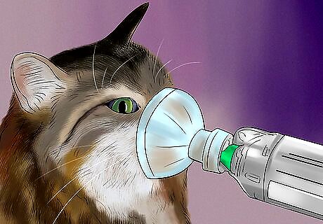 Talk to the vet about corticosteroids and bronchodilators. If your vet rules out parasites or infection, they will likely prescribe a corticosteroid, which acts as an anti-inflammatory. In addition, they might suggest a bronchodilator, which opens up the airways. Both of these medications come in oral, inhaled, or injectable forms. Talk to your vet about which option is best for your cat, and be sure to administer any medication as directed. While often used in combination with corticosteroids, bronchodilators are rarely prescribed on their own.