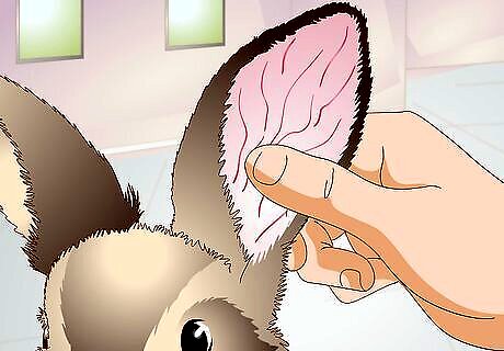 Check your rabbit's ears. Look at the thinly furred inner part of your rabbit's ears. You should be able to see small blood vessels in the skin which give the ears a pink, red, or flushed appearance. This is because heat stroke can cause the blood vessels to dilate (get larger). The ears will also feel hot to the touch. The rabbit's fur may seem dull and starry (ruffled or spiky).