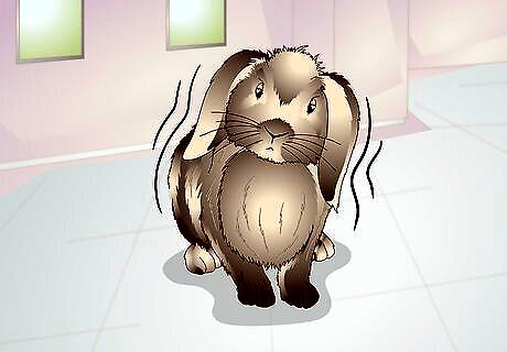 Watch your rabbit's movements. If your rabbit has heat stroke, he probably won't move around very much. When he does move, he might be slow and seem uncoordinated. Your rabbit might be wobbly or weak on his legs. Some rabbits tremble, shiver, or have convulsions because of heat stroke.