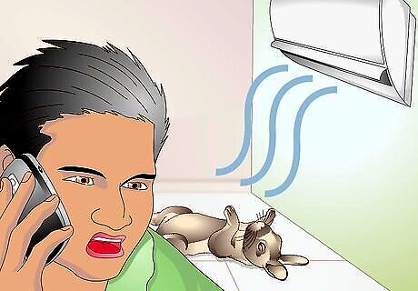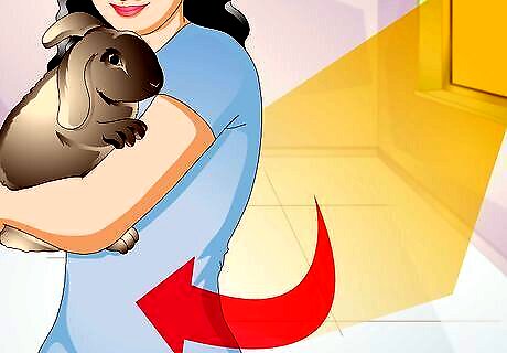 Know when to get medical attention. At the first sign of heat stroke (as soon as you recognize symptoms), move the rabbit to a cooler area and contact the veterinarian. Since heat stroke can become lethal very quickly, your rabbit needs immediate veterinary care. In extreme cases, the vet may put your rabbit onto intravenous fluids which can cool his blood and support organ function.