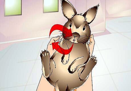 Monitor your rabbit's breathing. Look for fast breathing that seems like your rabbit is panting. Your rabbit may only be able to take rapid shallow breaths while keeping his mouth open. This means he's breathing through flared nostrils. He may also toss his head from side to side while he struggles to breathe.