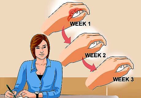 Determine if your symptoms flare up every few weeks or months. Most types of psoriasis will flare up for a few weeks or months and then go into remission. You may notice your symptoms appearing in cycles, with a flare up and then a remission, where your symptoms subside for a time. You may keep a journal of your symptoms to track how often your psoriasis flares up. You may also note when or if your psoriasis is in remission in your journal. If you feel your symptoms continue to flare up and then subside on a consistent basis, you likely have a form of psoriasis and should be examined by your doctor to confirm your diagnosis.