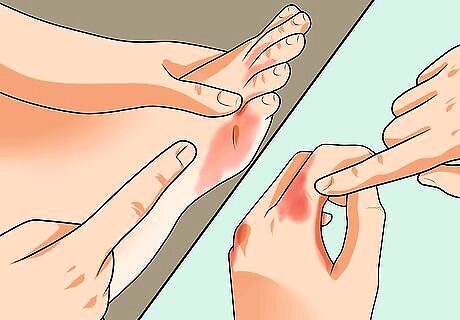 Examine your hands, feet, and fingertips for blisters. The blister may appear to be filled with pus and the skin around the blisters may appear red and tender. These are symptoms of pustular psoriasis, a less common form of psoriasis. If you have this type of psoriasis, you may also experience fever, chills, diarrhea, and severe itching.