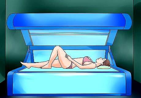 Try light therapy. If your psoriasis is more severe or it does not go away with topical treatments, you doctor may suggest the use of light therapy or phototherapy. During light therapy, your skin is exposed to natural or artificial ultraviolet light in controlled doses. Your doctor may refer you to a dermatologist, who will perform light therapy on your skin in their office. Depending on the severity of your psoriasis, you may need to do about 20 light therapy sessions before you see improvements on your skin. You can also try lying out in the sun as a form of light therapy. You may do multiple sunbathing sessions throughout the week to help treat your psoriasis. Make sure you wear SPF 15 and over on areas of your body that do not have psoriasis and avoid getting sunburnt, as sun burns can make psoriasis worse.