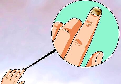 Check to see if your nails are thickened, pitted, or ridged. These are symptoms of nail psoriasis. If you have this type of psoriasis, you may also notice your nails are discolored and growing abnormally. Your nails may also become loose and separate from the nail bed, or it may crumble.