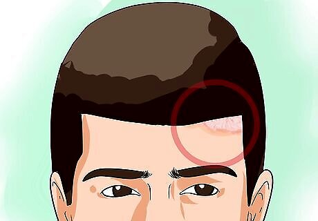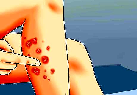 Look for red patches of skin that appear scaly. You should look for any red patches of skin on your body, including your genitals and the inside of your mouth. The red patches may look like they are covered with silvery scales and may only appear in a few spots on your body or in large areas on your body. If you notice these symptoms, you may have a type of psoriasis called plaque psoriasis. This is the most common form of psoriasis. You should also check along your hairline for red, itchy areas that have silvery-white scales. This is often a symptom of scalp psoriasis. You may also notice that you have flakes of dead skin in your hair or on your shoulder, especially after you have scratched at your scalp. Never treat plaque psoriasis with oral prednisone, because that leads to an increased risk of pustular psoriasis.