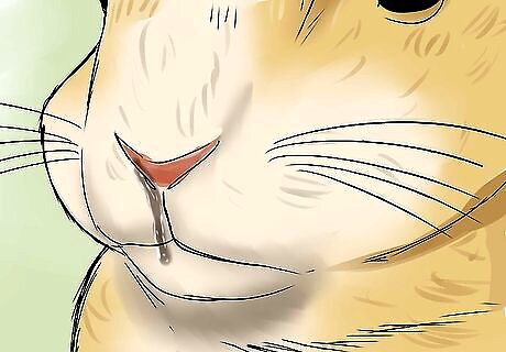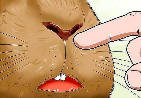 Pay attention to nasal discharge. An early sign of the illness is a watery nasal discharge, which becomes thicker and has a white consistency. This excessive discharge irritates the nasal passages and causes the rabbit to sneeze. Rabbits breathe through their nose and so having a runny nose is distressing for them. They may rub at their nose with the front paws, and have staining on the fur of the face and the forearms as a result.