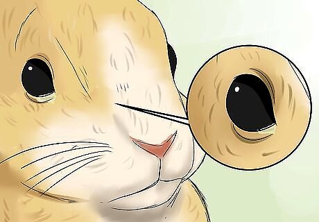 Inspect the rabbit's eyes. The pasteurella bacteria can affect the drainage and tear production of the eyes. If this is the case, the eyes may be watery or have a milky or creamy discharge. To treat this symptom, antibiotics may be applied to the eye and it may need to be gently flushed with saline to clear out the discharge.