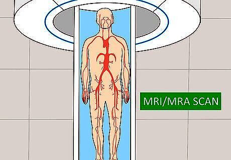 Ask for an MRI or MRA scan if your CT(A) scan is inconclusive. Discuss an MRI (magnetic resonance imaging) or MRA (magnetic resonance angiography) scan with your doctor for very detailed pictures of your arteries. These tests create comprehensive images of your arteries using strong magnetic fields and can determine if your arteries show concerning narrowing that may indicate a TIA. If you have a pacemaker, aneurysm clip, or any other metal device lodged in your body, an MRI is not recommended. The strong magnetic field can disturb your implant.