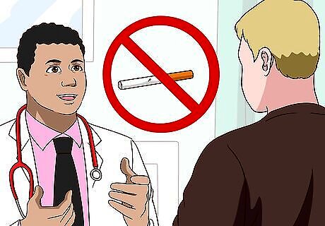 Start a smoking cessation program, if needed. Quit smoking if you’re a smoker. Your doctor can discuss different therapies available to you and connect you with local resources to reduce your urge to smoke. Patches, medications, and behavioral therapy can all help you quit smoking. In the US, you can call the national Quit Smoking hotline at 1-800-QUIT-NOW.